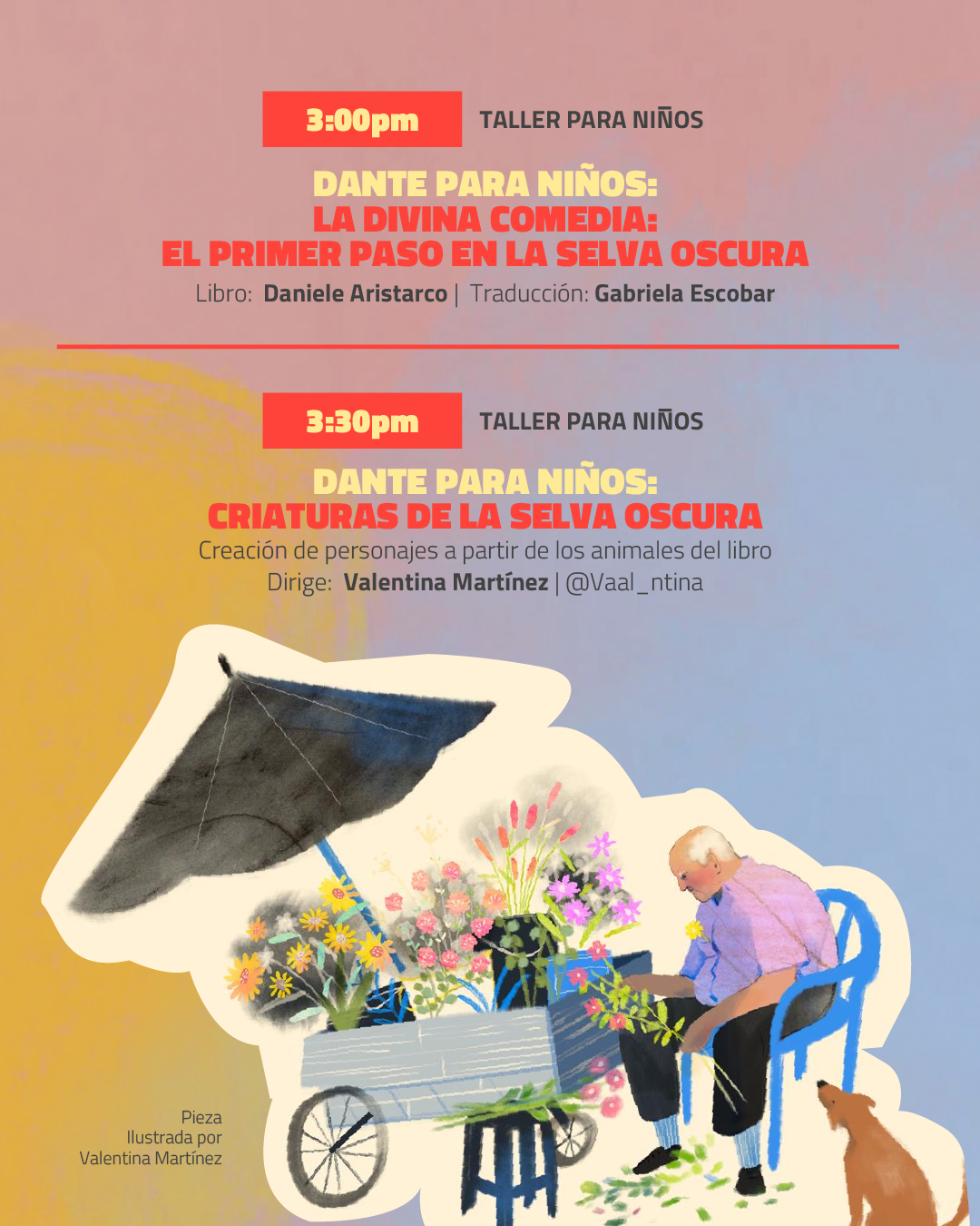- 3:00pm – Presentación del libro “La Divina Comedia: El primer paso en la selva oscura” de Gabriele Aristarco, con la presencia de la traductora Gabriela Escobar;
